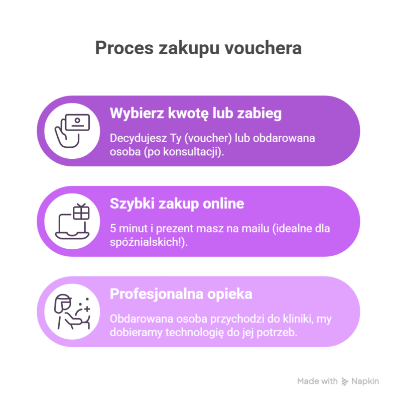 I teraz pomyśl o niej. O tym, że może od dawna mówiła, że chciałaby „coś zrobić ze skórą”, że marzyła o serii depilacji przed wakacjami albo że odkładała zabieg odmładzający, bo zawsze było coś ważniejszego. Taki prezent na Dzień Kobiet to sygnał: Twoje potrzeby są ważne. Zadbaj o siebie.
